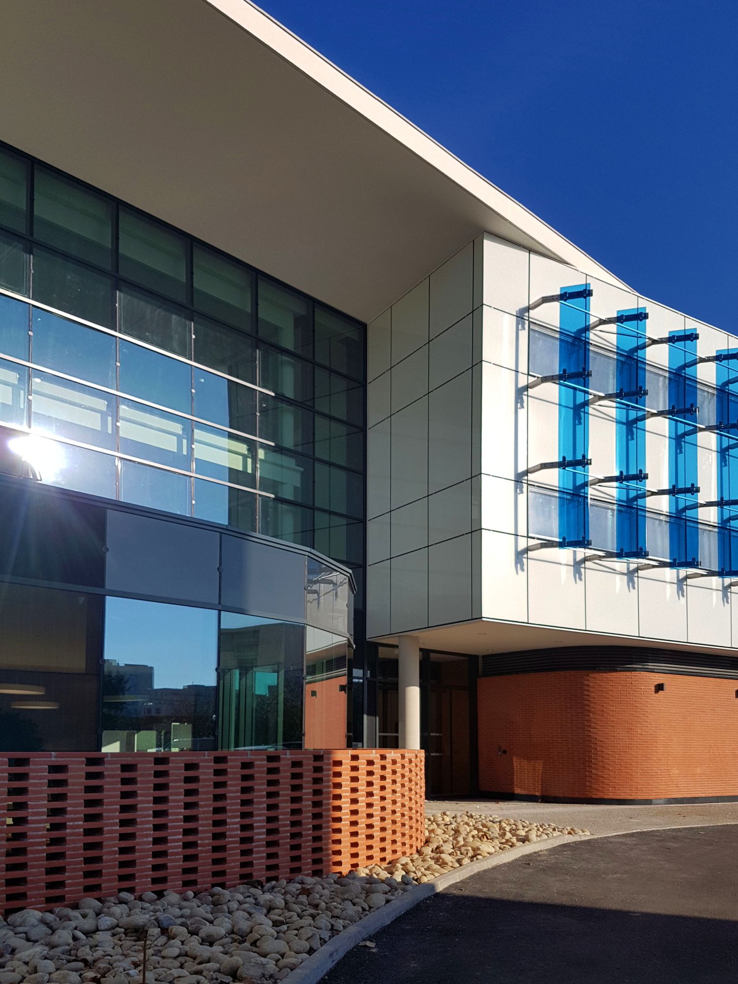Le projet consiste en la construction d'un immeuble de bureaux pour le compte et sur le site de l’agence de l’Eau Adour Garonne rue St Roch. L’implantation se fait en continu des alignements des bâtiments existants et ainsi assure la continuité bâtie sur la rue. Au rez-de-chaussée, un mur en brique ondule formant soubassement, les deux niveaux supérieurs sont plus rigoureux dans leur géométrie avec des brises soleils en verre bleu à l’image de la fonction abritée.