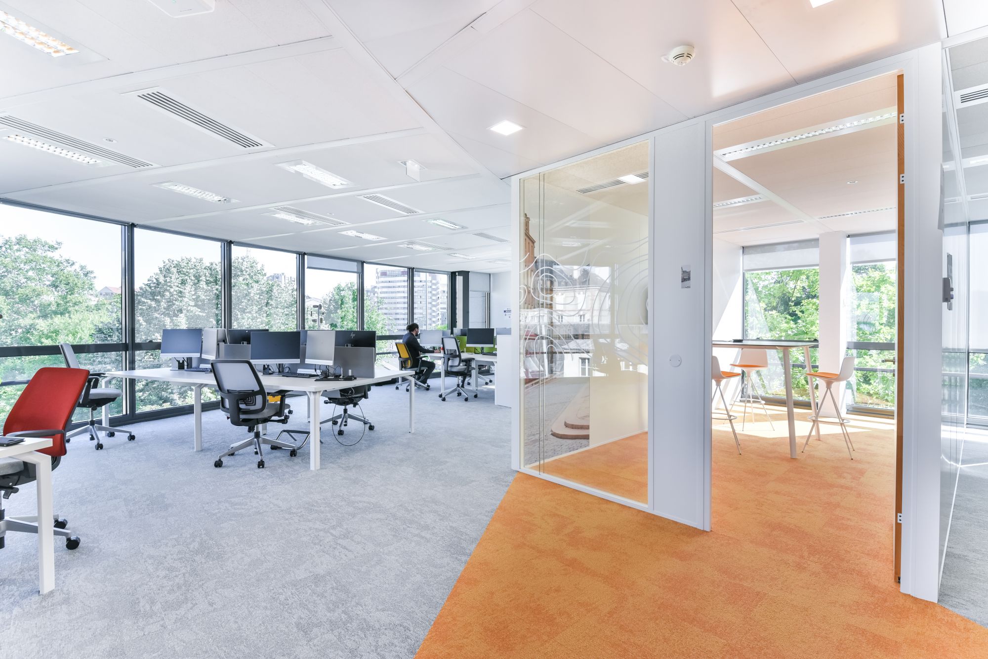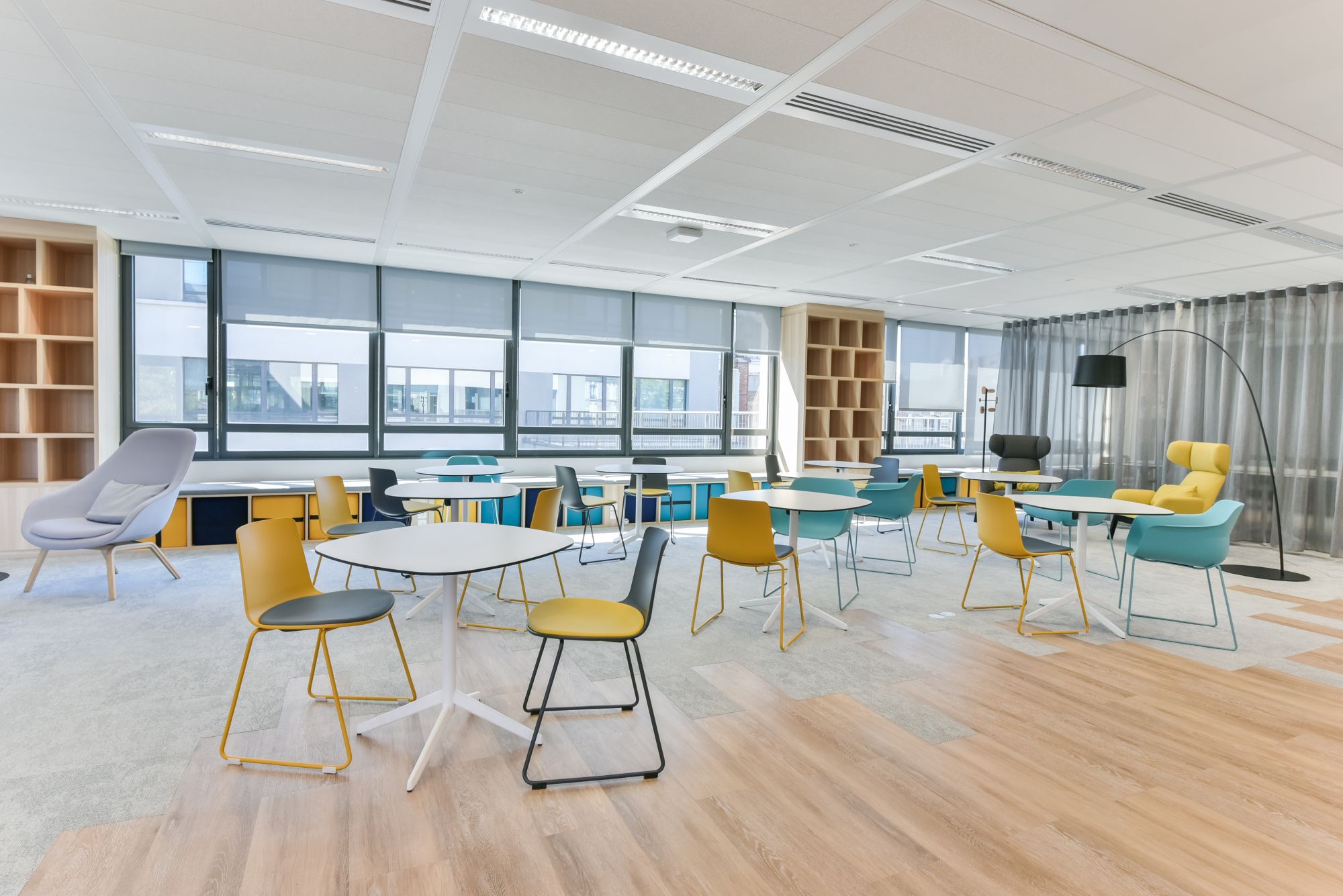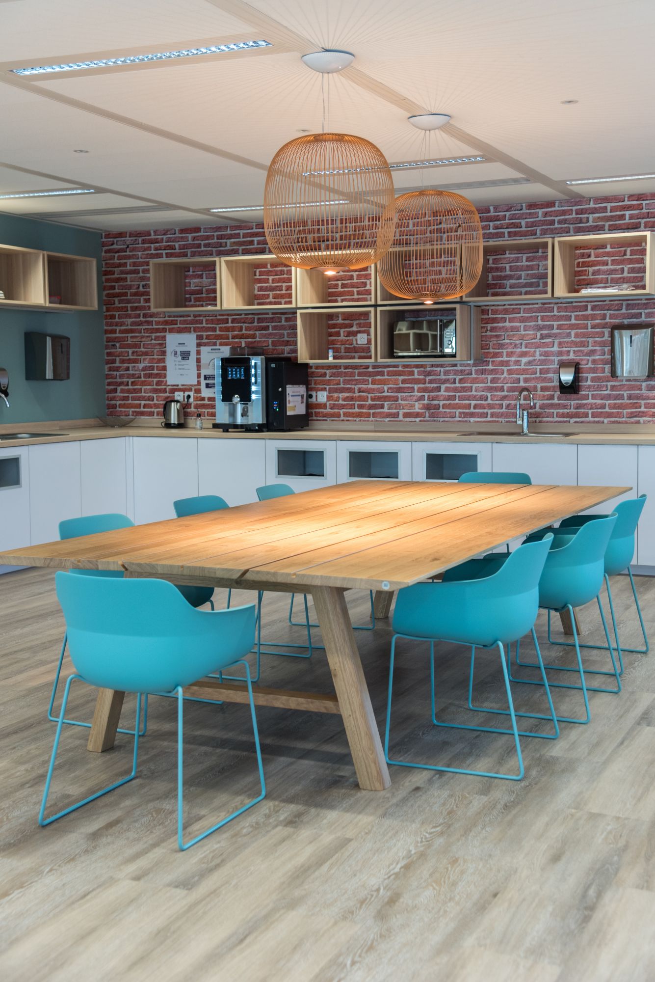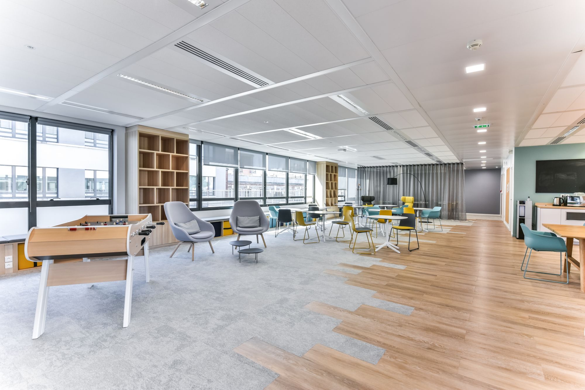 Nos équipes ont conçu et réalisé un aménagement de bureaux en flex-office et un grand espace de convivialité.
